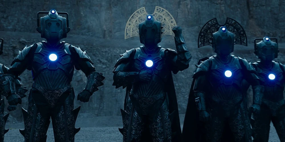 The CyberMasters later resurfaced as part of the Master's Dalek Plan, where they were allied with both the normal Cybermen and the Daleks. The CyberMasters, led by a Cyber-Leader, attacked a space-faring bullet train to capture a Qurunx. While they were defeated by the Doctor, Yasmin Khan and Dan Lewis, they still managed to succcessfully capture the Qurunx. After the Master stole the Doctor's body and identity, an AI hologram of the Fugitive Doctor tricked the CyberMasters into shooting each other, allowing Yasmin Khan and Inston-Vee Vinder to overpower the Master before the CyberMasters began to regenerate. On the hologram's direction, Yaz channelled all of the CyberMasters' regeneration energy into the Doctor's body, powering a retro-regeneration that restored the Doctor back to herself and sent the Master back into his original body. This appeared to drain the CyberMasters of their regenerative capability completely, leaving them permanently dead. After awakening, the weakened Master abandoned his CyberMasters as he went after the Doctor.