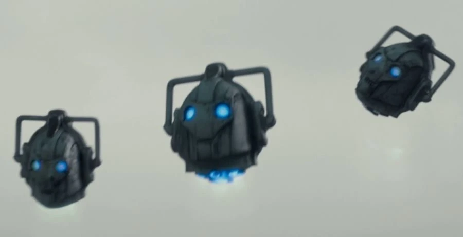 The Cyberdrone appeared to be a disembodied head of a fifth-generation Cyberman. It had glowing blue eye holes and an anti-gravity engine built into the neck that allowed it to fly. These units could fire destructive laser blasts from their eyes.