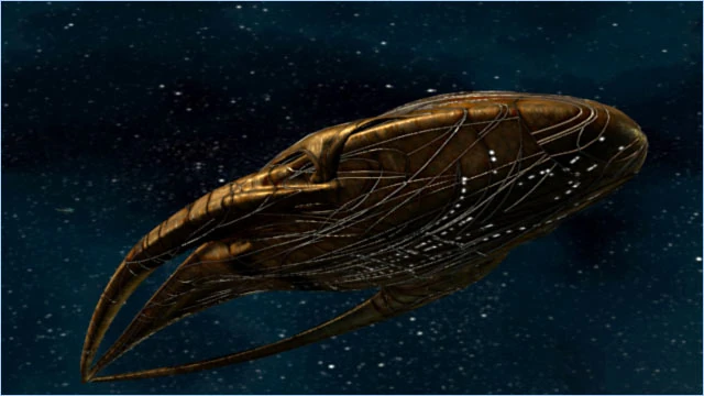 Leviathans are biomechanical space-faring creatures from the sci-fi TV series, Farscape. Essentially they are living starships, constructed from both organic and artificial materials by a group of mysterious beings known only as the Builders, which Leviathans regard as gods. Though easily mistakable as mere spacecraft, Leviathans are entirely sentient and capable of free thought and emotions.