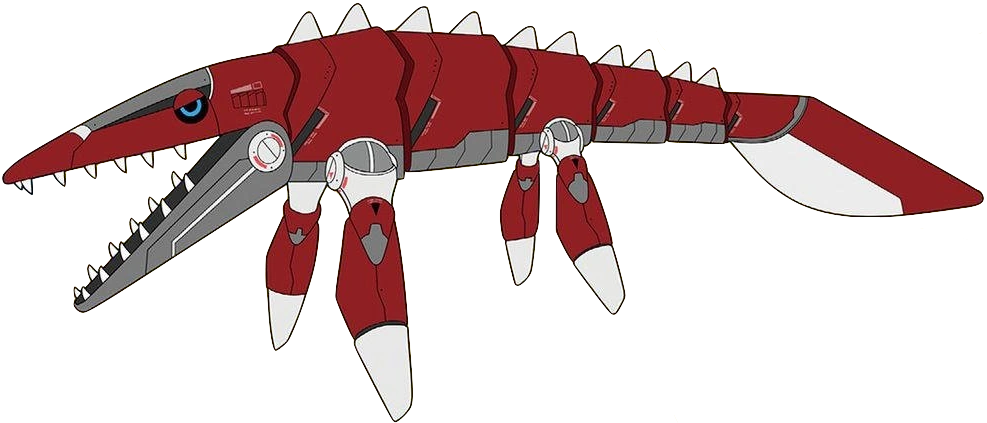 The Mosasaurus is a giant Badnik modeled after the extinct animal of the same name. It has a long body consisting of seven segments including the head and tail. It is coloured red with a grey underbelly, features four fins for movement which are red and white, black eyes with cyan irises and a row of white spines along its back.